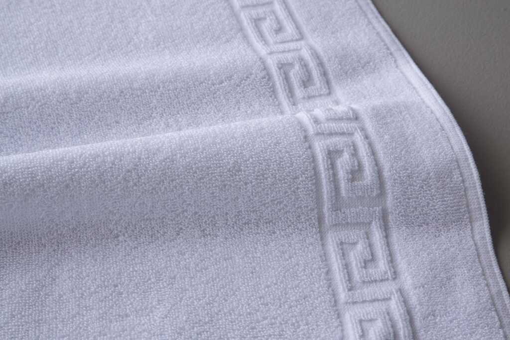Combina resistencia y belleza en una sola toalla. Su material de calidad superior garantiza una larga vida útil, mientras que su greca detallada aporta un toque exclusivo que no pasa desapercibido.